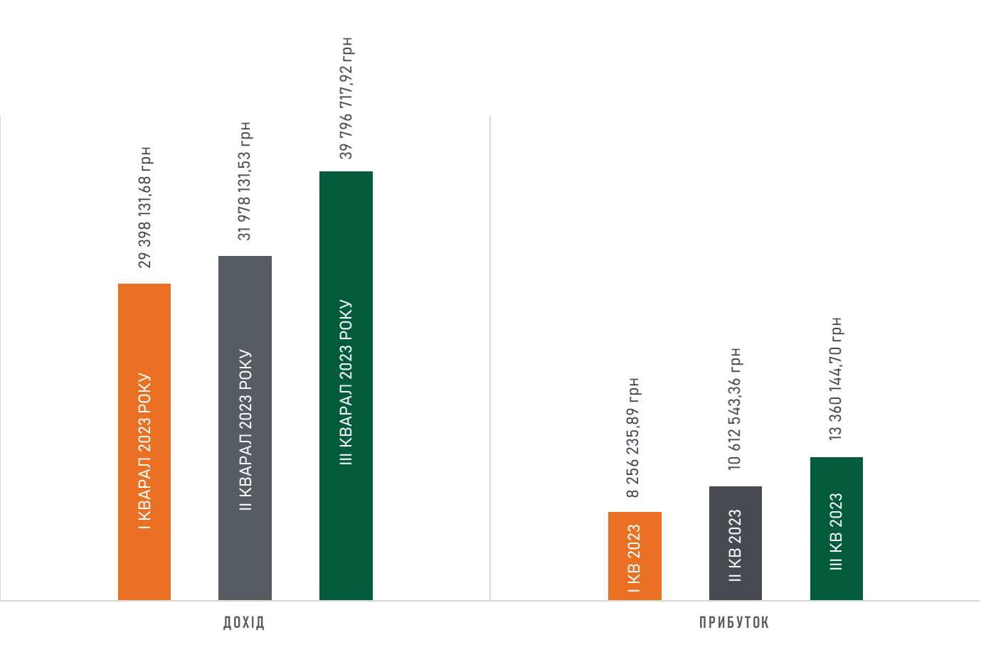 Залишок коштів на рахунку | на 30.09.2023 року: 24 044 889,41 грн | на 30.06.2023 року: 17 009 530,76 грн |