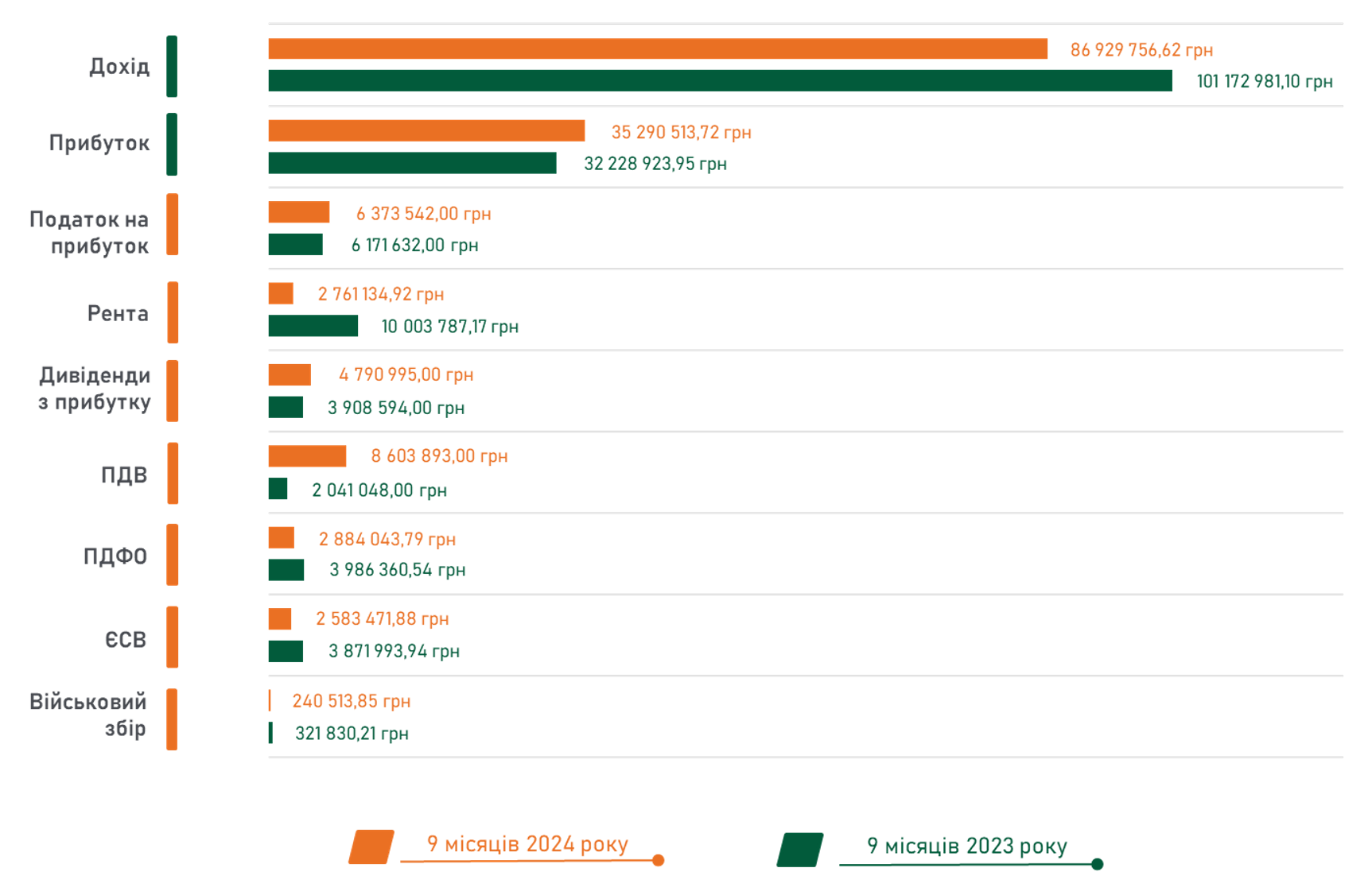 Порівнюючи з підсумками фінансово-господарської діяльності за 9 місяців 2023 року, коли до загального фонду Волинського обласного бюджету з частини чистого прибутку у розмірі 15% сплачено 3 908 594,00 грн, помітно, що 9 місяців 2024 року стали більш успішними.