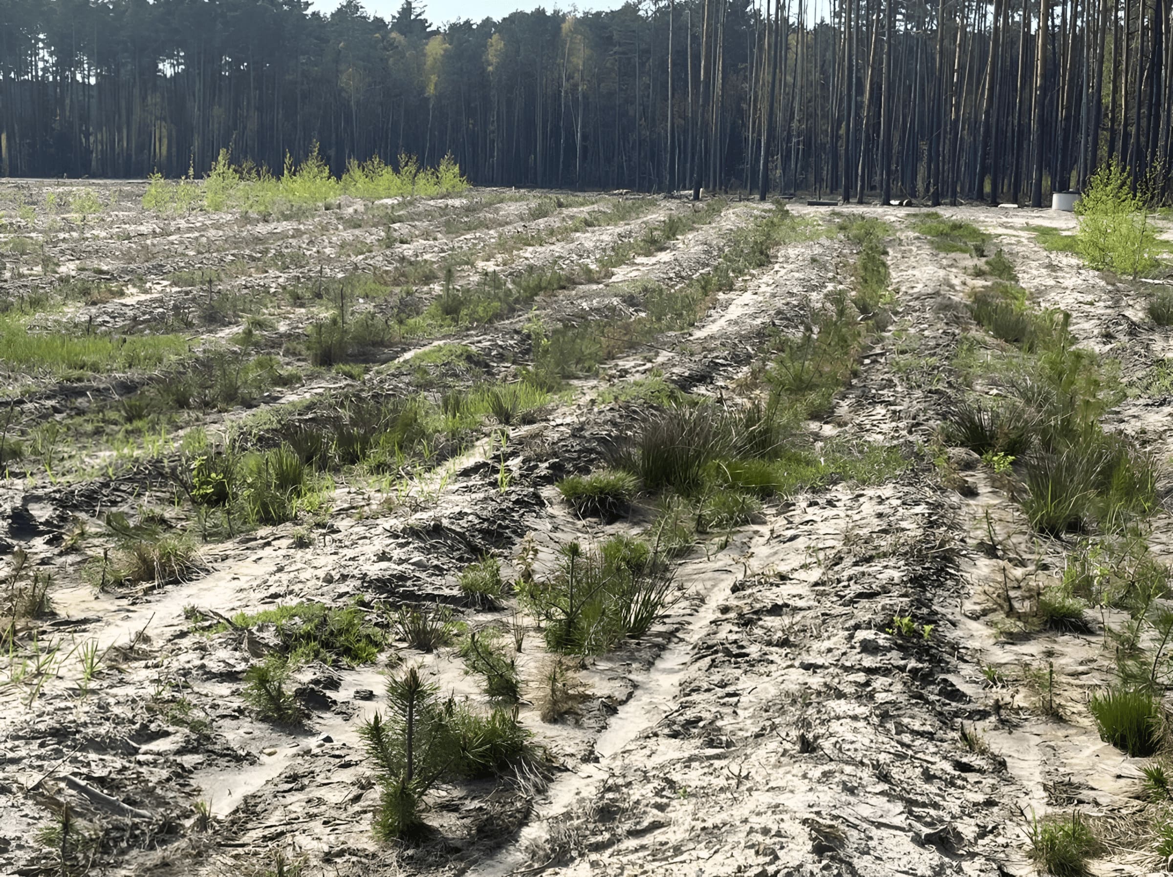 The first step is to carry out mining-technical reclamation: the layers of soil are returned in the order of their original deposition, compacted, and restored to the state that existed before the start of extraction operations. Soon after this, the worked-out areas (with completed mining-technical reclamation) are transferred to forestry for biological reclamation, namely – tree planting. The forestry develops a plan for biological reclamation, including a planting plan and steps, selection of species, and root systems, etc. Thus, after the completion of extraction operations, the entire area is mechanically planted.