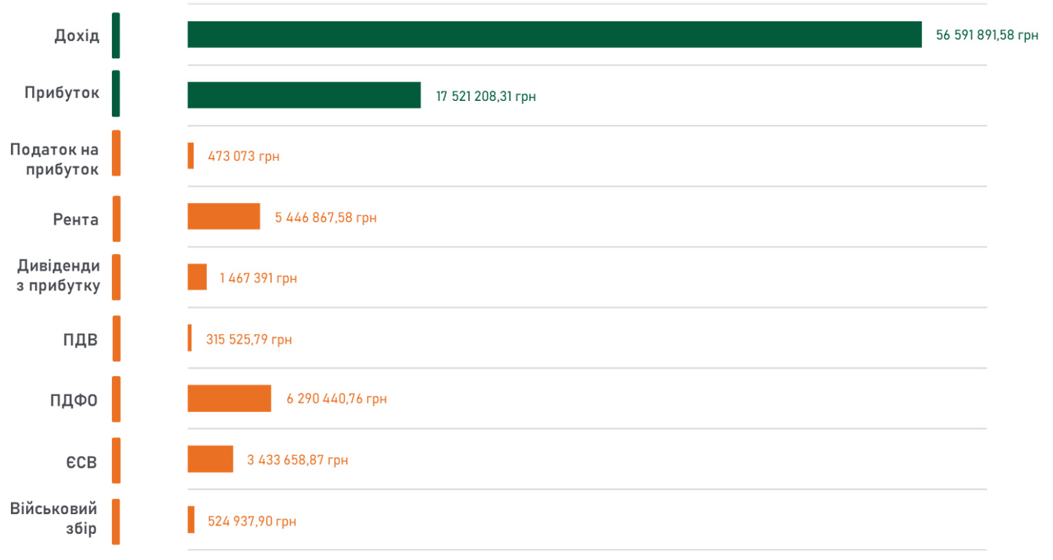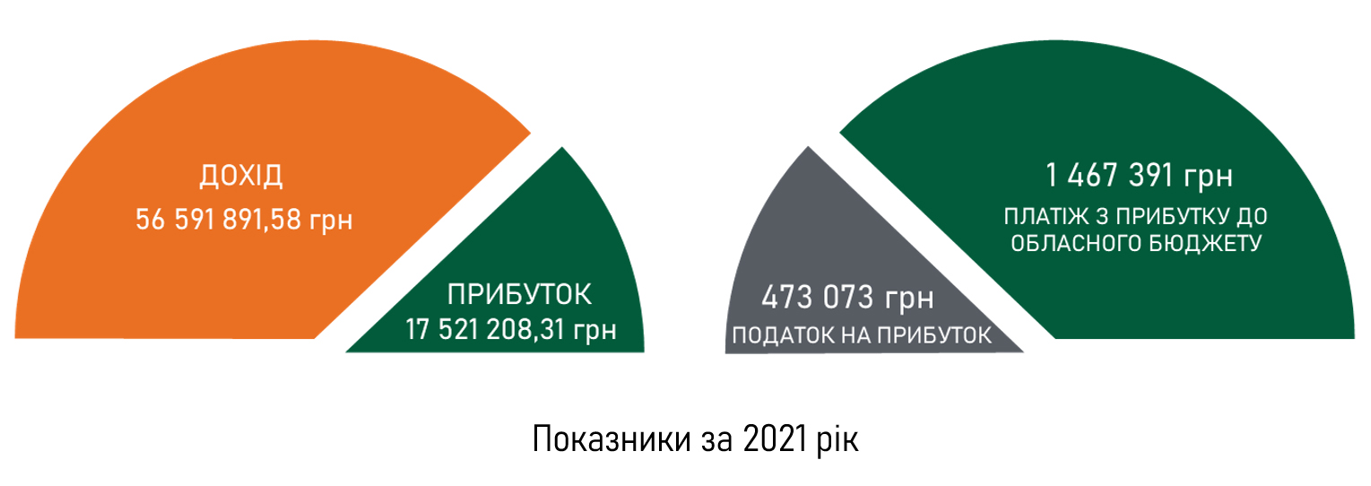 До загального фонду Волинського обласного бюджету з частини чистого прибутку у розмірі 15% за підсумками щоквартальної фінансово-господарської діяльності за 2021 рік сплачено 1 467 391 грн.