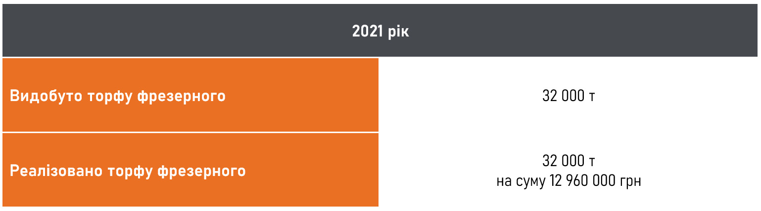 Окрім бурштину, важливим напрямком діяльності підприємства залишався видобуток торфу, що є стратегічним ресурсом для енергетики та сільського господарства. Завдяки розширенню потужностей та оптимізації виробничих процесів, КП «Волиньприродресурс» забезпечило стабільні фінансові результати, що дозволило не лише виконати фінансові зобов’язання, а й спрямувати значні кошти до бюджетів різних рівнів.