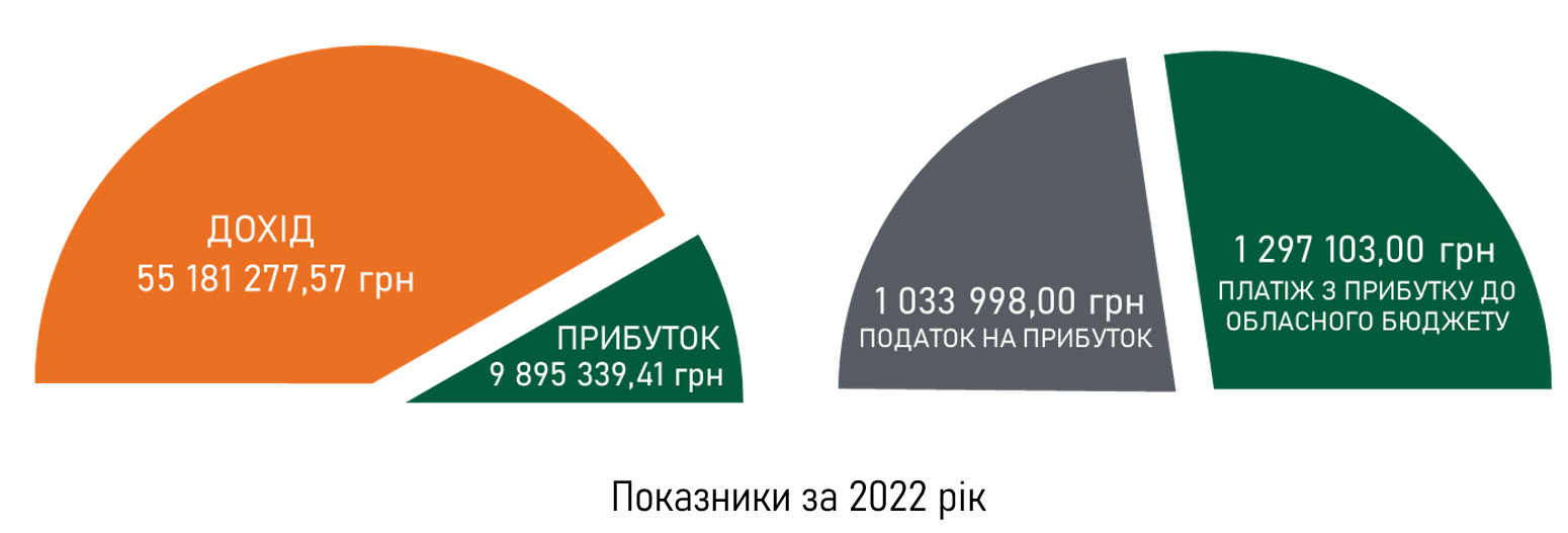 До загального фонду Волинського обласного бюджету з частини чистого прибутку у розмірі 15% за підсумками щоквартальної фінансово-господарської діяльності за 2022 рік сплачено 1 297 103 грн.