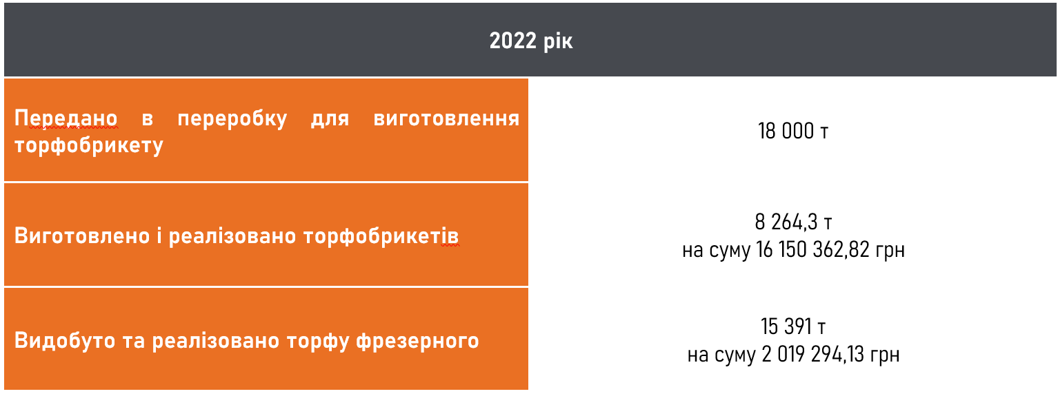 Реалізація торфу та торфобрикету, дохід від реалізації