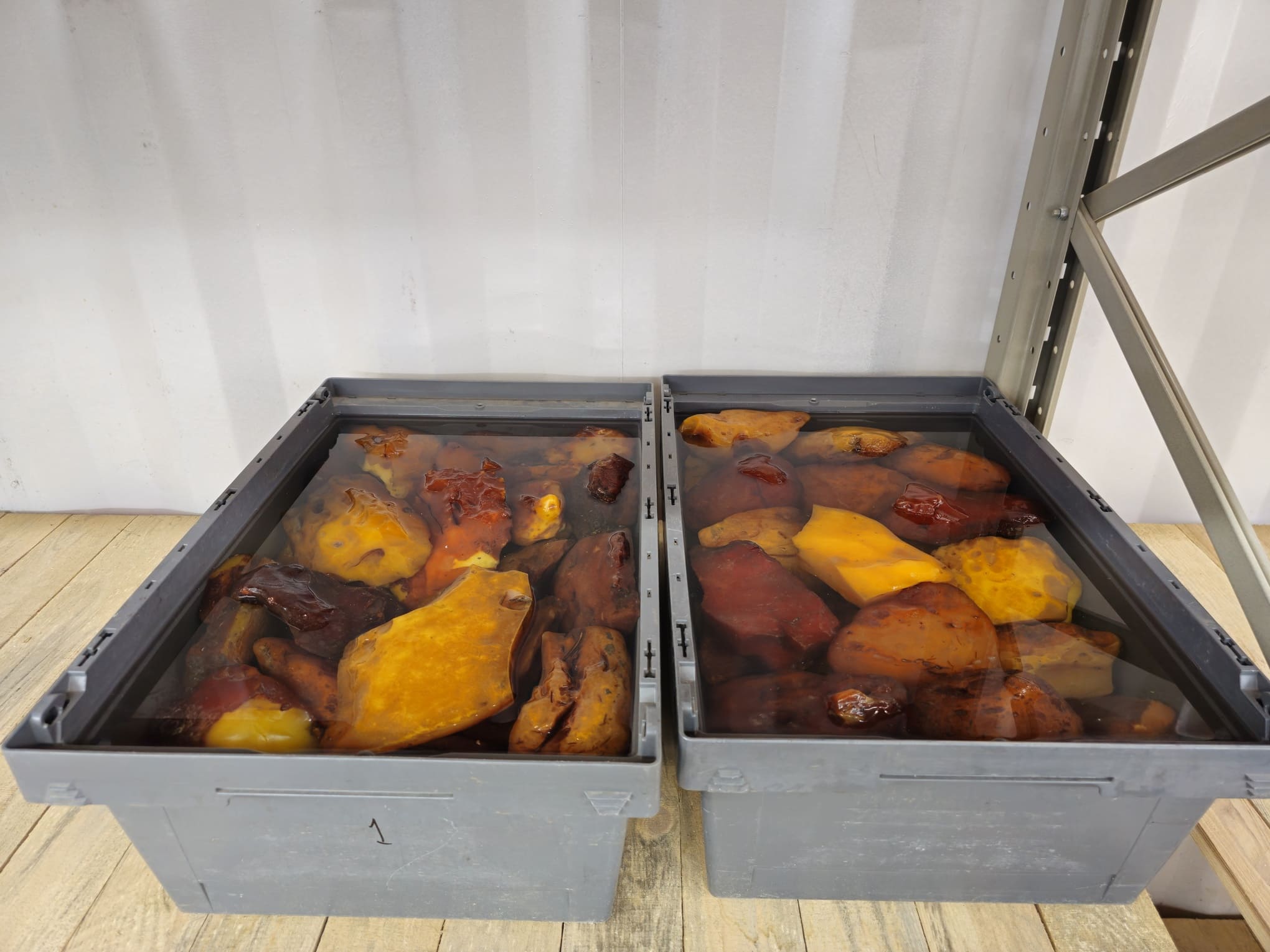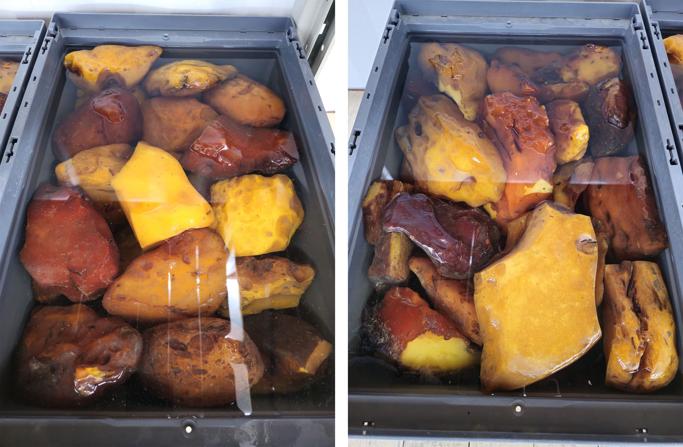 «Такі камені не оцінюють грамами, а розглядають як окремий витвір природи. Всі ці великі зразки бурштину зберігаються у ящиках, наповнених водою, у сховищах підприємства. Коли камінь знаходився в глині, в породі, він був законсервований. Ми його дістали назовні і якщо він буде просто лежати - може потріскатися. І камінь, до прикладу, вагою у 800 грамів, розколеться і перестане вважатися ексклюзивним. Саме тому ми забезпечуємо спеціальні умови зберігання таких зразків».